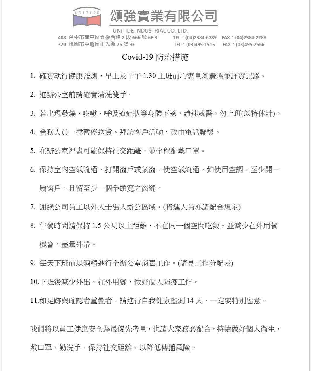 配合政府防疫措施,我們有信心。